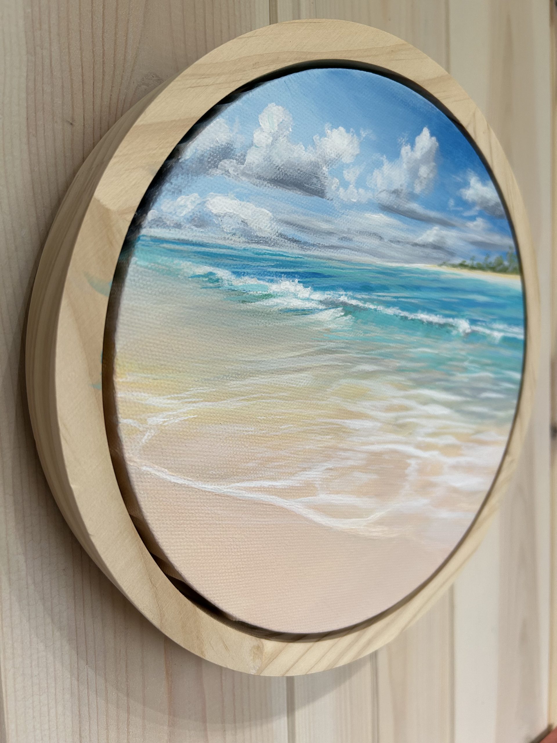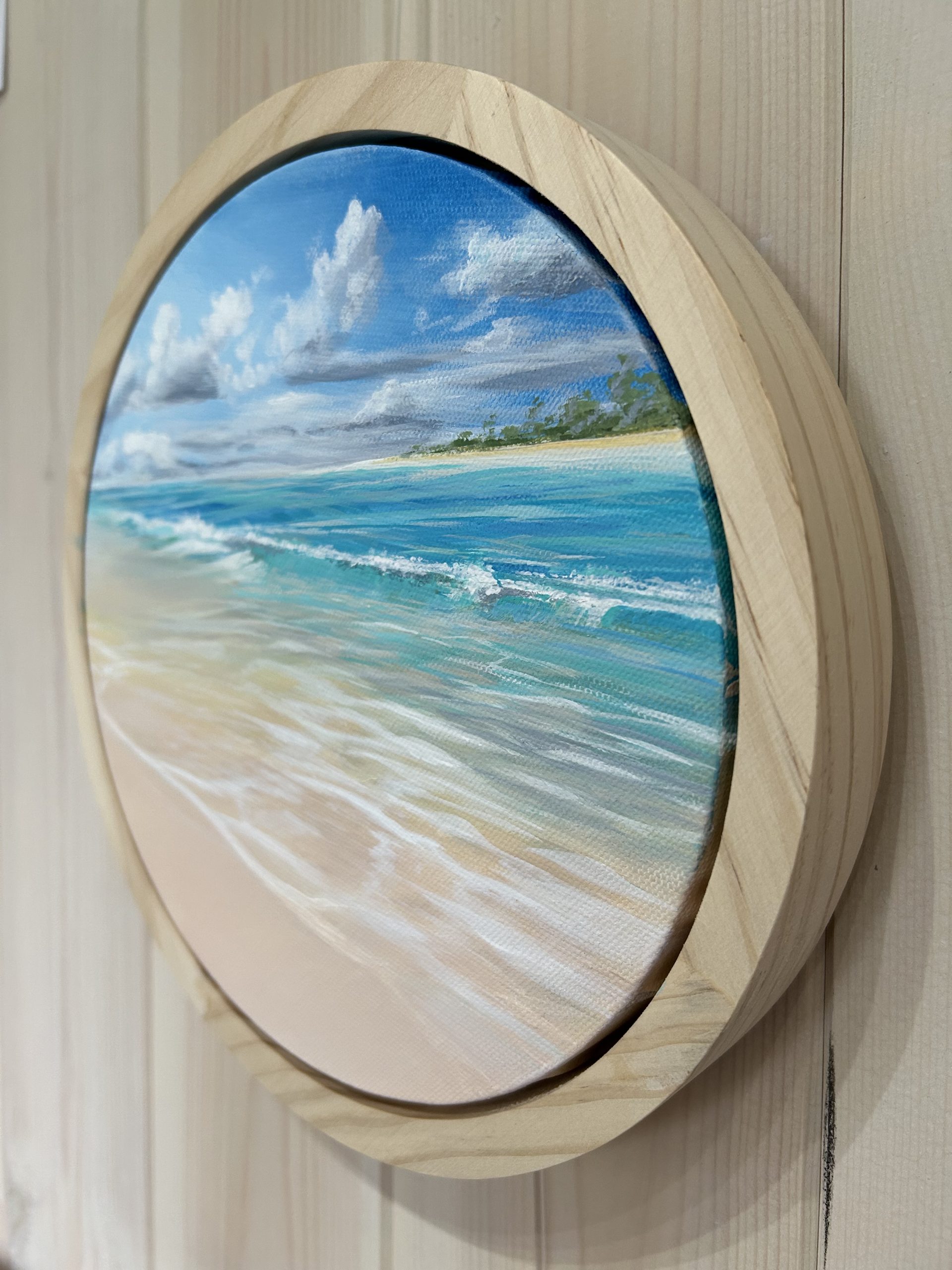 Original painting on a framed, round canvas